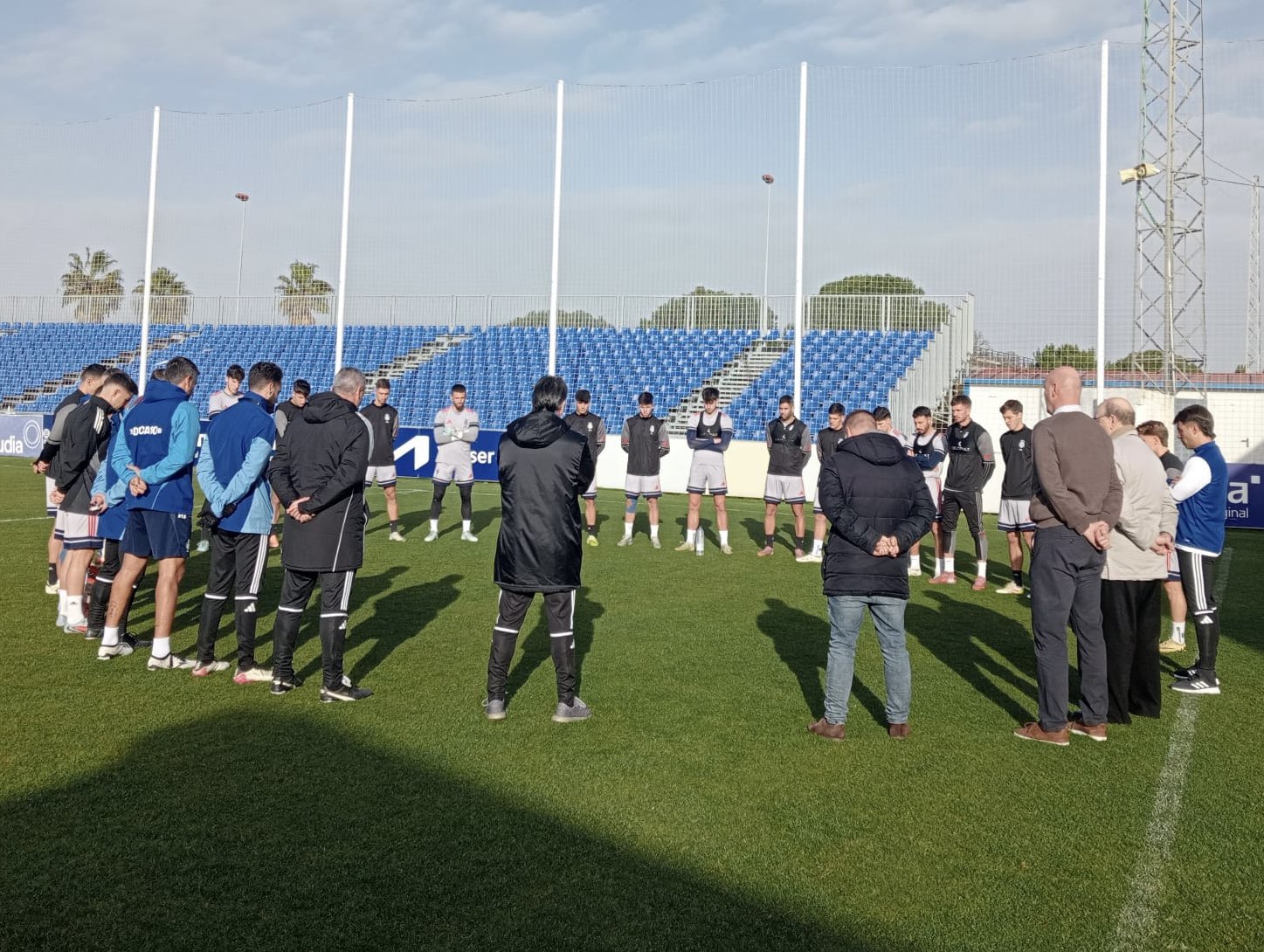 Antes de comenzar el entrenamiento de hoy, los miembros de la plantilla del primer equipo, cuerpo técnico y Comisión Deportiva han guardado un minuto de silencio en memoria de Manolo Toledano.